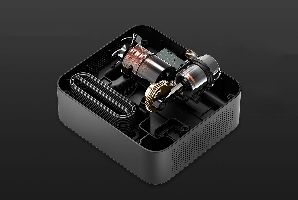 Urządzenie charakteryzuje się wysoką jakością wykonania. Metalowy korpus i koła zębate gwarantują trwałość oraz odporność na uszkodzenia. Zintegrowana ochrona przed przegrzaniem umożliwia ciągłą pracę przez 30 minut - wystarczająco, by napompować opony w standardowym pojeździe. Kompresor ma również elegancką, kompaktową obudowę z zaokrąglonymi krawędziami, która jest praktyczna w przechowywaniu w samochodzie. Wszystkie niezbędne akcesoria są schowane w dedykowanej przegrodzie na dnie obudowy, co zapobiega ich zgubieniu.