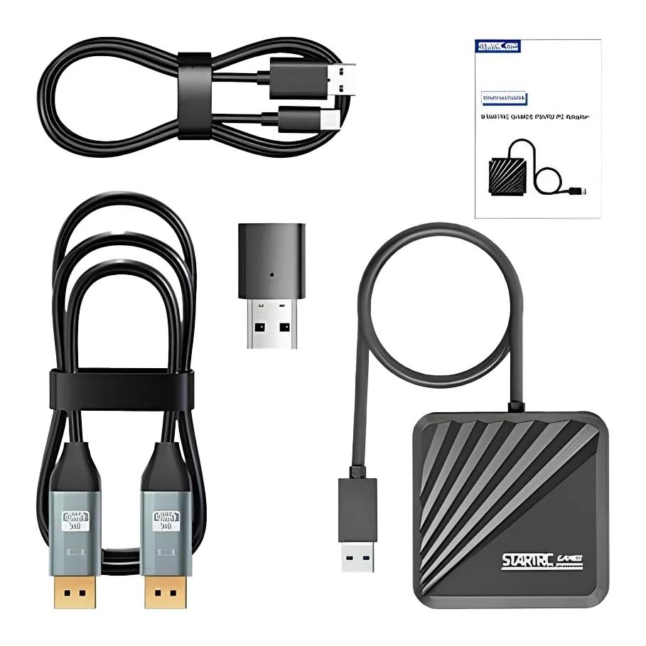 ✔️ Złącza i okablowanie w zestawie – przewód DisplayPort 1.4 i USB-C