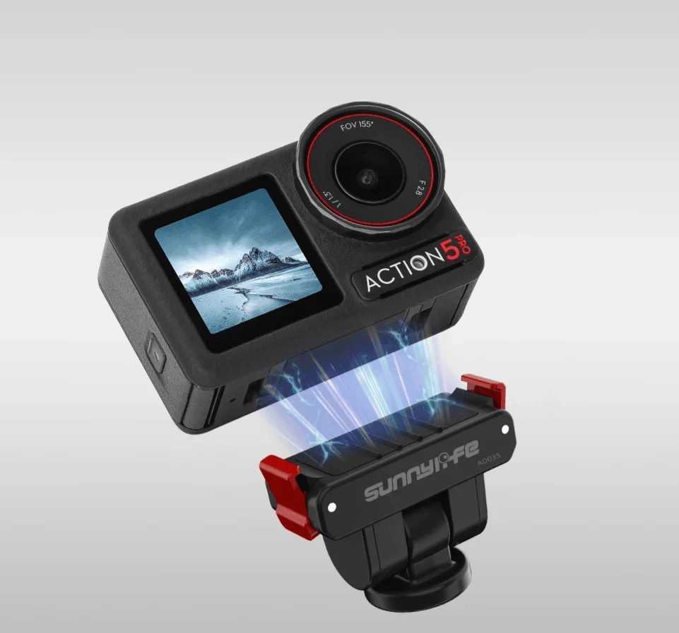 Sunnylife AD035 to praktyczny adapter montażowy zaprojektowany z myślą o użytkownikach kamer sportowych DJI. Łączy magnetyczne mocowanie, regulację kąta do 180° oraz gwint 1/4", dzięki czemu pozwala szybko tworzyć różne konfiguracje nagrywania. To niewielkie akcesorium znacząco zwiększa elastyczność pracy z kamerą – zarówno podczas codziennych nagrań, jak i w bardziej dynamicznych ujęciach w terenie.