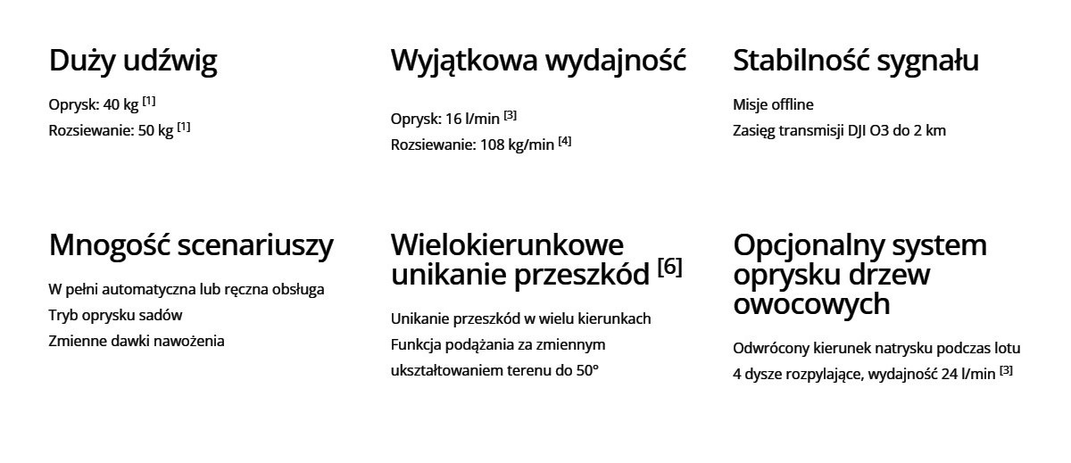 DJI AGRAS T50 wznosi operacje rolnicze na nowy poziom dzięki zaawansowanym technologiom i solidnej konstrukcji. Wyposażony w potężny współosiowy układ napędowy z dwoma silnikami na każde ramię, oferuje wyjątkową stabilność podczas oprysków o masie 40 kg oraz rozsiewania o masie 50 kg. System podwójnego rozpylania, przedni i tylny radar fazowy oraz system wizyjny binocular zapewniają stałą wydajność i stabilną pracę.