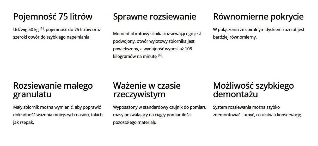 | Objętość zbiornika do rozsiewania | 75 l |