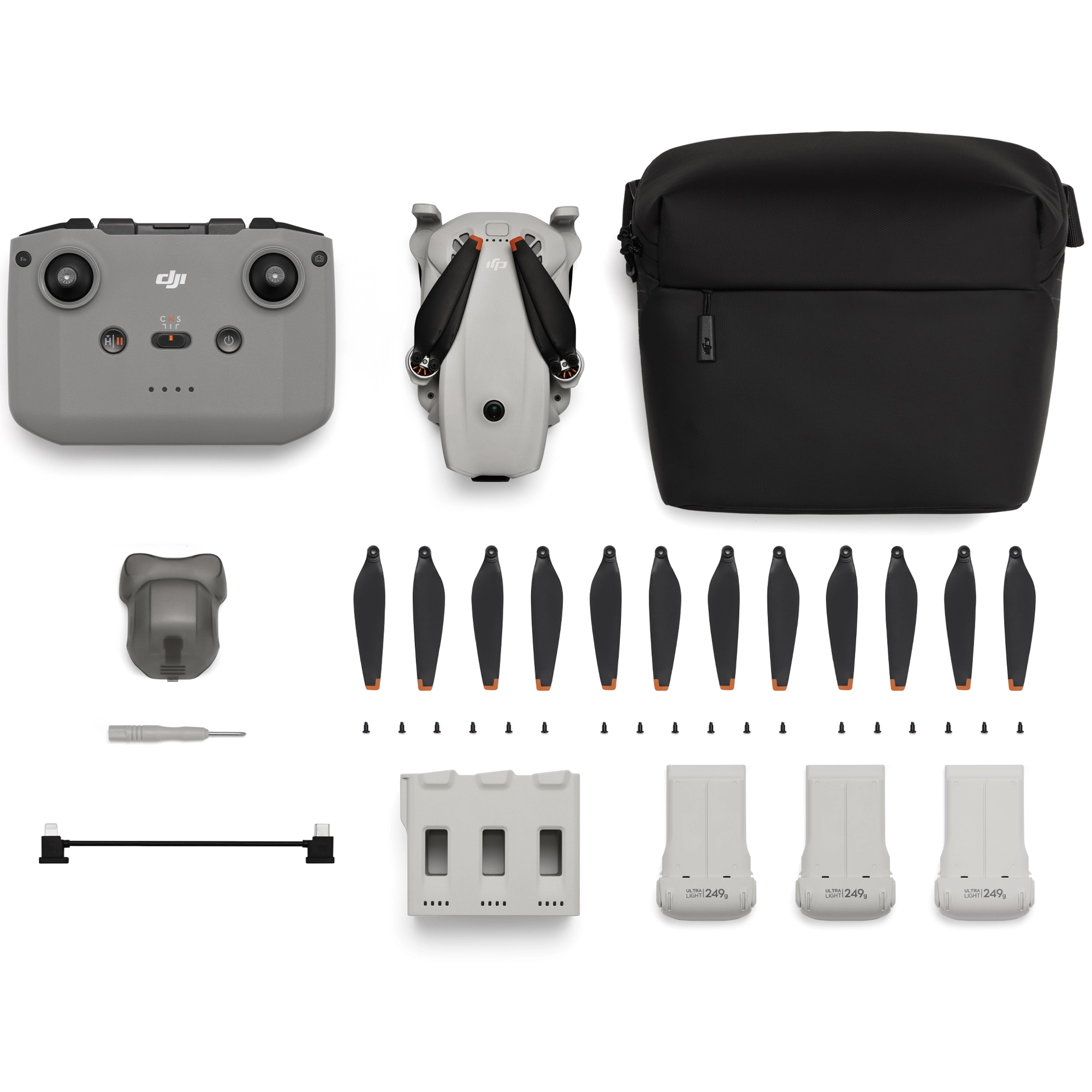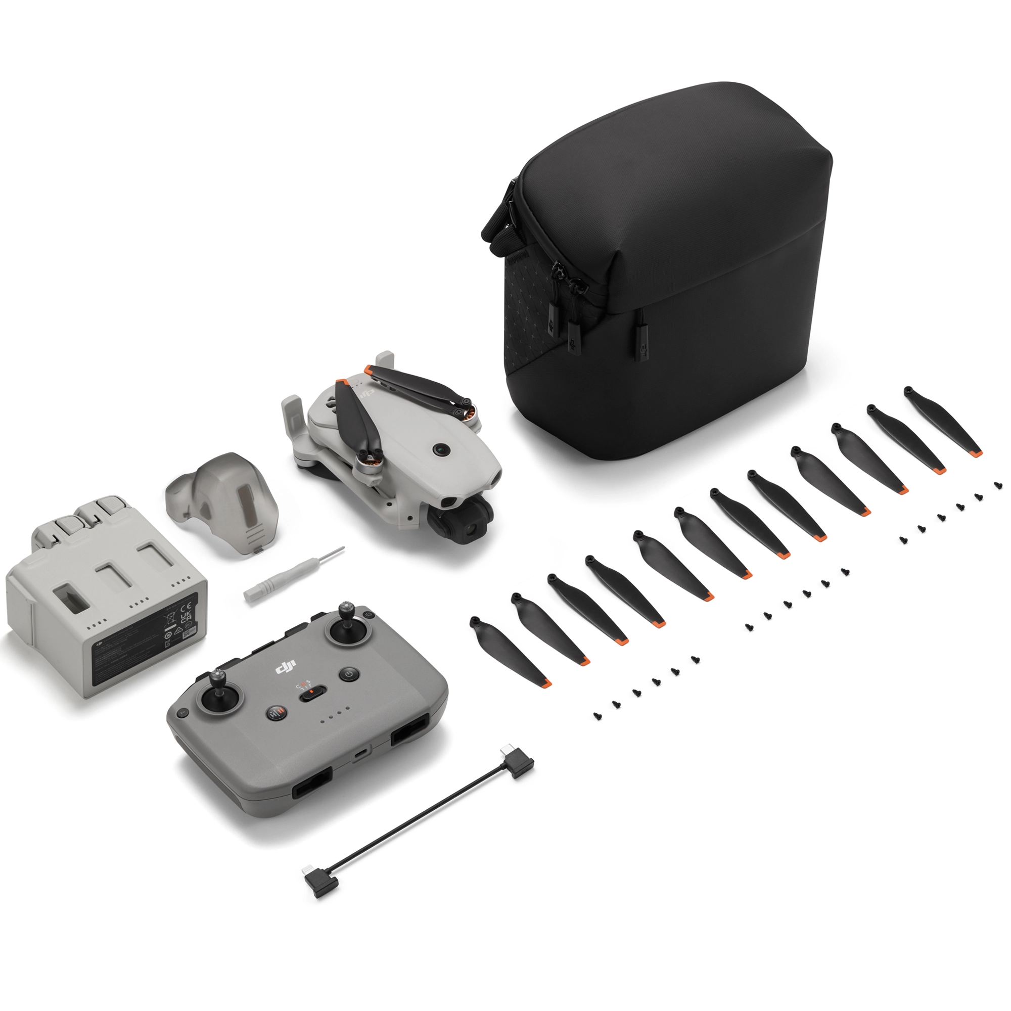✔ Zestaw Fly More Combo z 3 akumulatorami, hubem do ładowania i torbą na ramię.