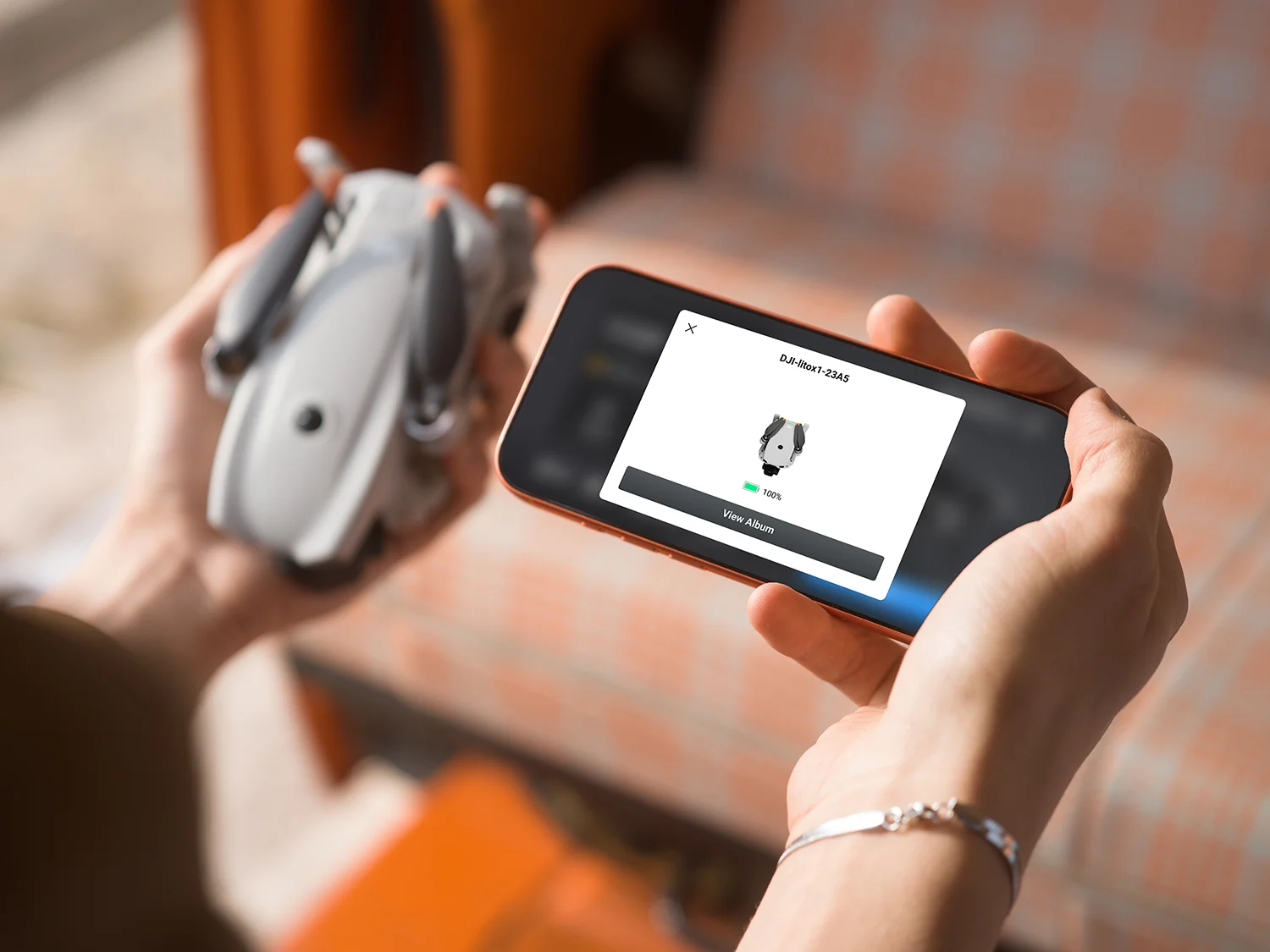 DJI Lito X1 oferuje 42 GB pamięci wewnętrznej, co pozwala zapisywać zdjęcia i filmy bez konieczności natychmiastowego sięgania po kartę microSD. To szczególnie wygodne podczas wyjazdów i krótkich sesji, gdy liczy się szybkie działanie. Dron obsługuje również Wi-Fi 6 i transfer danych do 50 MB/s, dzięki czemu kopiowanie materiałów przebiega sprawnie i pozwala szybciej przejść do selekcji oraz edycji. Funkcja Off-State QuickTransfer dodatkowo upraszcza dostęp do plików, umożliwiając wygodne połączenie z urządzeniem z poziomu aplikacji DJI Fly.