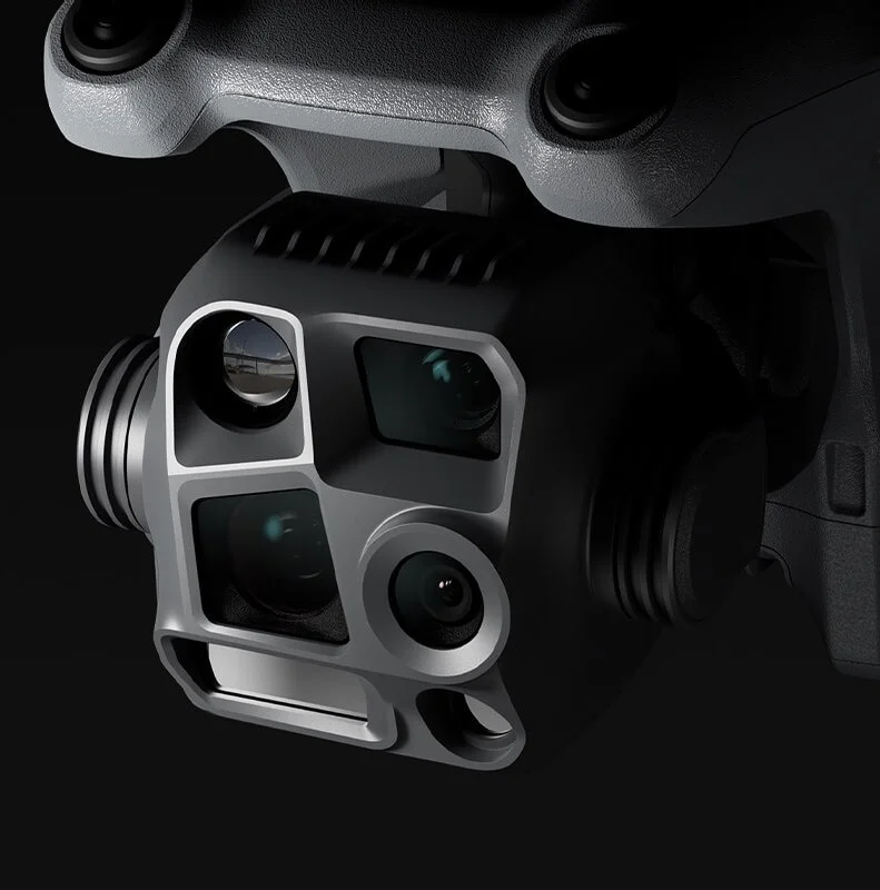 DJI Matrice 4TD jest wyposażony w szerokokątną kamerę 1/1.3 cala CMOS 48MP, średni teleobiektyw 1/1.3 cala CMOS 48MP, teleobiektyw 1/1.5 cala CMOS 48MP, kamerę termowizyjną na podczerwień, dodatkowe światło NIR oraz dalmierz laserowy. Posiada potężne możliwości termowizji i obrazowania w słabym oświetleniu.