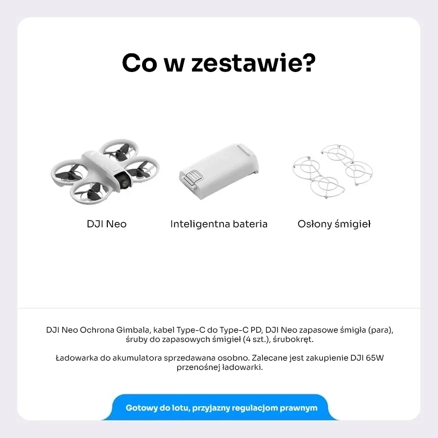 - 1x Inteligentny akumulator DJI Neo