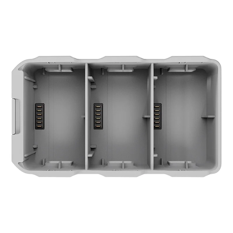 Hub został zaprojektowany tak, aby obsługiwać maksymalnie trzy akumulatory jednocześnie. To wygodne rozwiązanie dla osób, które korzystają z kilku baterii podczas jednej sesji i chcą ograniczyć przestoje między lotami. Zamiast ładować każdy akumulator osobno, możesz przygotować cały zestaw w bardziej uporządkowany i efektywny sposób.
