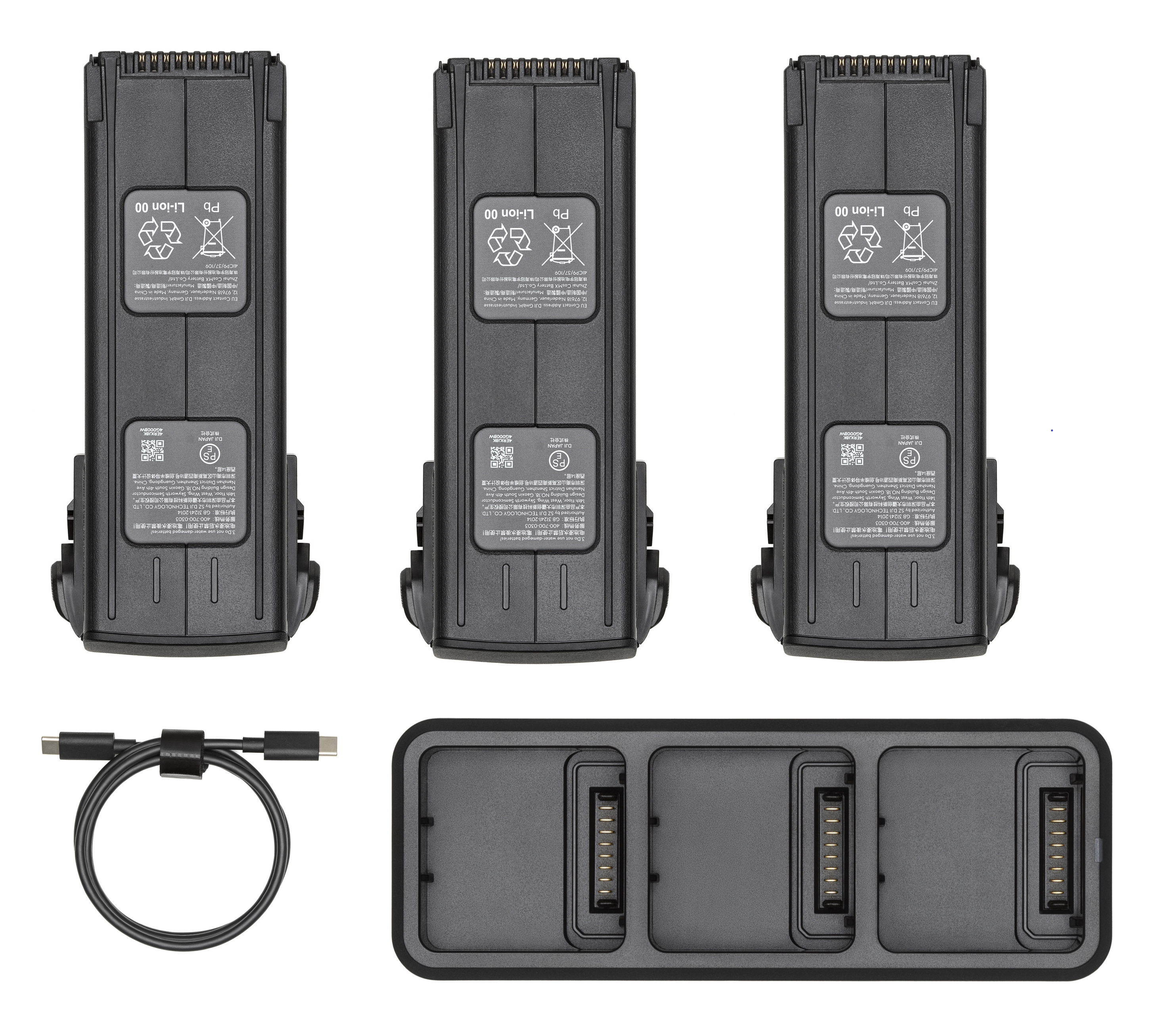 DJI Mavic 3 Enterprise Series Battery Kit zawiera trzy akumulatory drona oraz jeden Hub ładowania (100W), aby sprostać wymaganiom długotrwałych zadań lub działań.