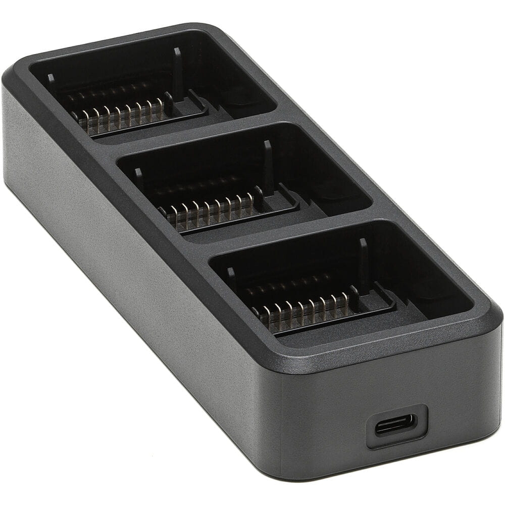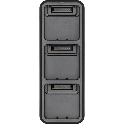 Po podłączeniu do ładowarki DJI MAvic 3 Hub ładowania DJI Mavic 3 może zostać rozszerzony, aby ładować 3 dodatkowe akumulatory. Urządzenie ładuje akumulatory sekwencyjnie, tym samym zwiększając efektywność.