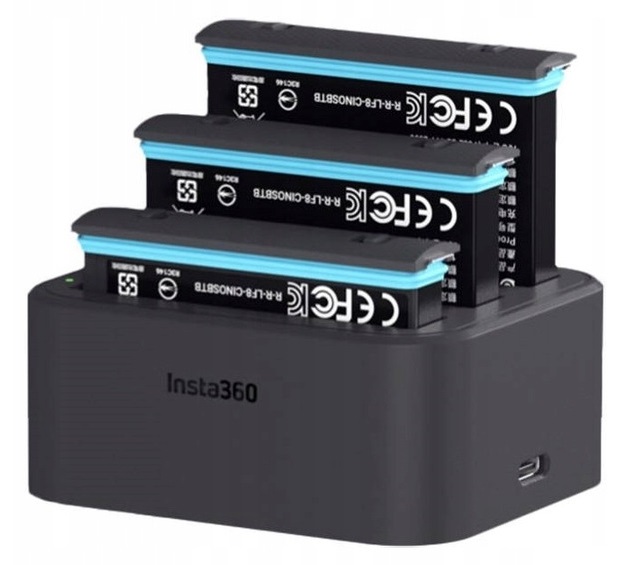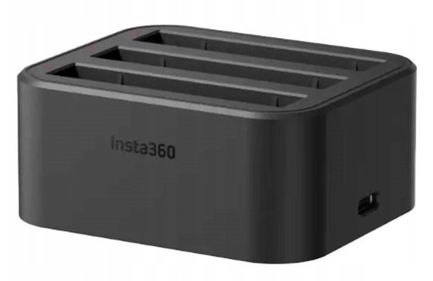 Zadbaj o wydajne źródło zasilania swojej kamery Insta360 X3. Pomoże Ci w tym hub ładowania, który umożliwia odnawianie energii trzech akumulatorów w jednym czasie. Produkt został wykonany z wysokiej jakości poliwęglanu, a dzięki kompaktowej konstrukcji nie zajmuje dużo miejsca. Hub posiada port USB-C, a o statusie ładowania informują praktyczne diody LED. Naładowanie akumulatorów zajmuje 90 minut.