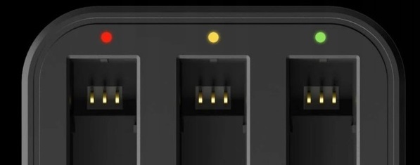 Każde z miejsc ładowania w Hubie od Insta360 wyposażone jest we wskaźnik świetlny. Dzięki temu łatwo rozpoznasz status ładowania. Kolor żółty oznacza poziom baterii poniżej 80%, a mocny żółty podłączoną baterie, ale brak ładowania. Kolor zielony oznajmia o stanie baterii od 80 do 100%, a mocny zielony informuje o pełnym naładowaniu. Diody mogą mieć również kolor czerwony.