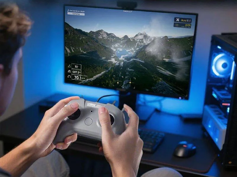 Kontroler bezbłędnie współpracuje z czołowymi tytułami na rynku, takimi jak Velocidrone, Liftoff, Uncrashed, DRL Simulator czy FPV Battleground. To najbezpieczniejsza metoda na podnoszenie swoich kwalifikacji pilotażu, pozwalająca uniknąć kosztownych kraks i uszkodzeń prawdziwego sprzętu podczas nauki nowych manewrów.