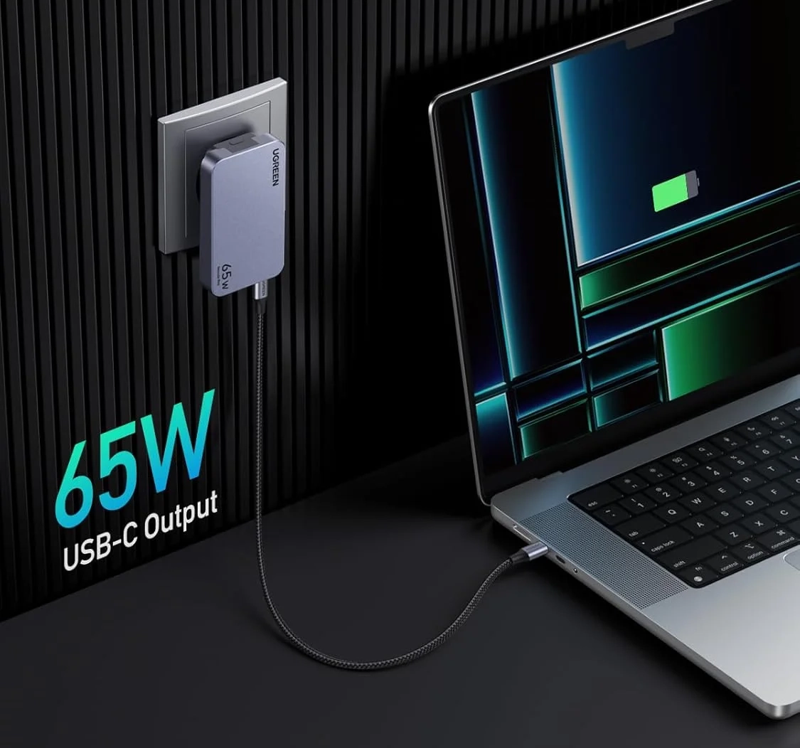 UGREEN Nexode Pro 65W to ładowarka stworzona dla osób, które nie chcą tracić czasu na długie czekanie, aż sprzęt odzyskają energię. Maksymalna moc 65 W pozwala szybko zasilać szeroką gamę nowoczesnych urządzeń, a obsługa popularnych standardów szybkiego ładowania sprawia, że ładowarka dobrze współpracuje z wieloma modelami sprzętu różnych producentów. To praktyczne rozwiązanie dla użytkowników, którzy korzystają na co dzień z kilku urządzeń jednocześnie. Jedna ładowarka może zasilać smartfon, słuchawki i tablet lub laptop, ograniczając liczbę potrzebnych zasilaczy i pomagając utrzymać porządek na biurku.