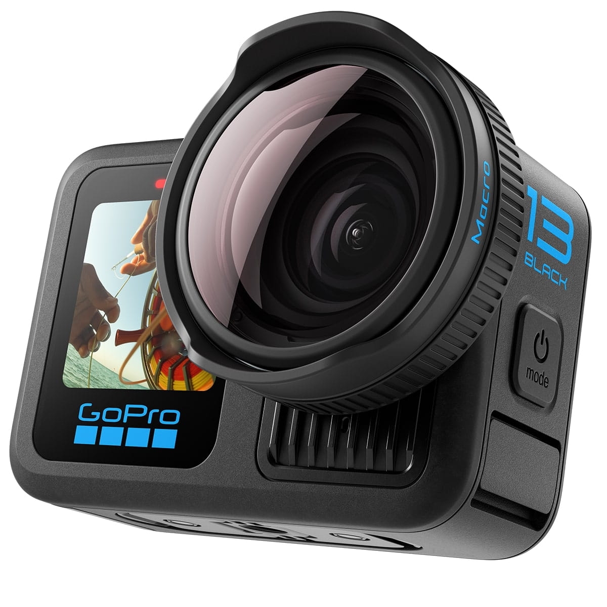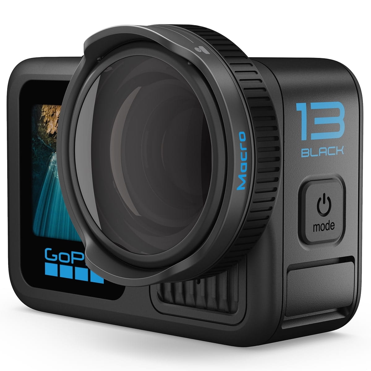 - HERO13 Black automatycznie rozpoznaje obiektyw, gdy jest zamocowany, i przełącza się w tryb Macro Lens Mod; po jego zdjęciu, kamera wraca do standardowych ustawień