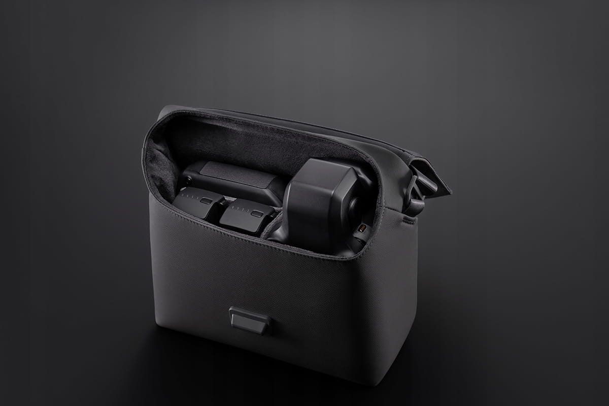 Konfiguracja torby na ramię zapewnia wystarczająco dużo miejsca na wszystkie akcesoria zawarte w standardowym zestawie DJI Mavic 3 Pro Fly More Combo, Mavic 3, DJI Mavic 3 Cine Premium Combo, DJI Air 3. W tej konfiguracji drony i akcesoria są łatwo dostępne.