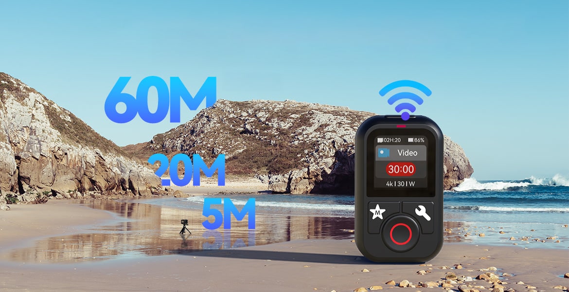 Dzięki Bluetooth, pilot zapewnia zasięg do 60 metrów, co pozwala na zdalne sterowanie kamerą w szerokim zakresie. To idealne rozwiązanie podczas nagrywania w plenerze lub z dużej odległości.