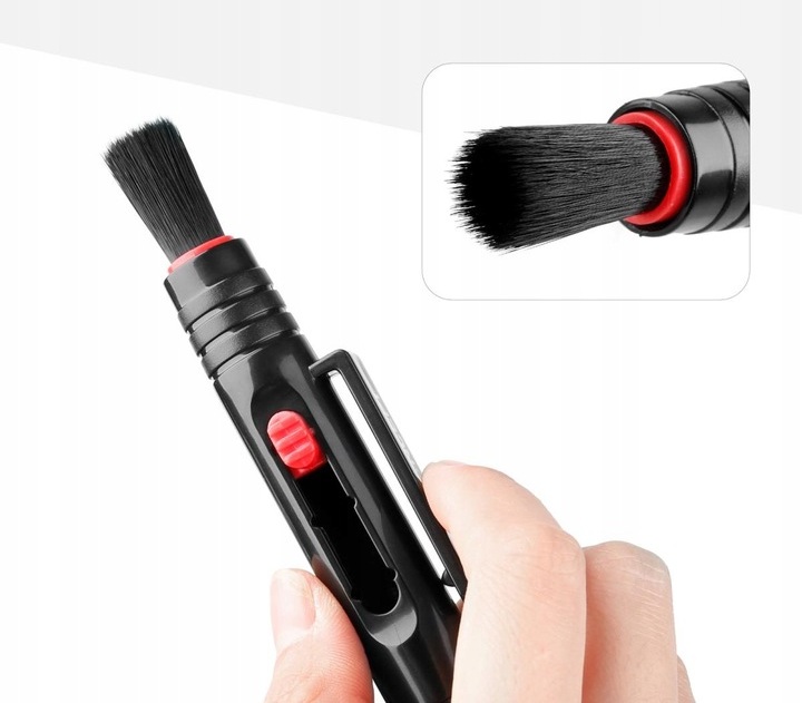 Zadbaj o czystość obiektywu i ekranu swojego aparatu. Pióro czyszczące K&F Concept wyróżnia się teleskopową konstrukcją – za pomocą dedykowanego suwaka wysuniesz miękką szczoteczkę, za pomocą której wyczyścisz ekran kamery. Po drugiej stronie produktu znajduje się podwójna głowica: okrągła i trójkątna, co pozwoli usunąć zanieczyszczenia z obiektywu kamery. Produkt sprawdzi się też w przypadku ekranu smartfona, szkła powiększającego itp.