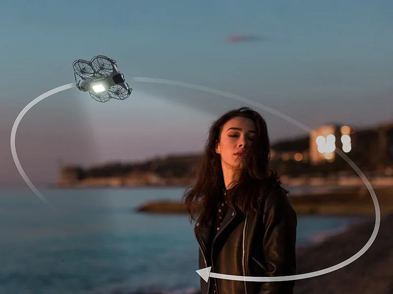 Wbudowane oświetlenie LED zwiększa funkcjonalność drona po zmroku i w słabym świetle. Dodatkowe doświetlenie przestrzeni pod urządzeniem może ułatwiać orientację podczas startu, zawisu i lądowania, a także poprawiać komfort pilotażu w mniej korzystnych warunkach oświetleniowych. To praktyczny dodatek dla osób, które wykonują loty wieczorem lub chcą poprawić widoczność drona podczas użytkowania nocą.