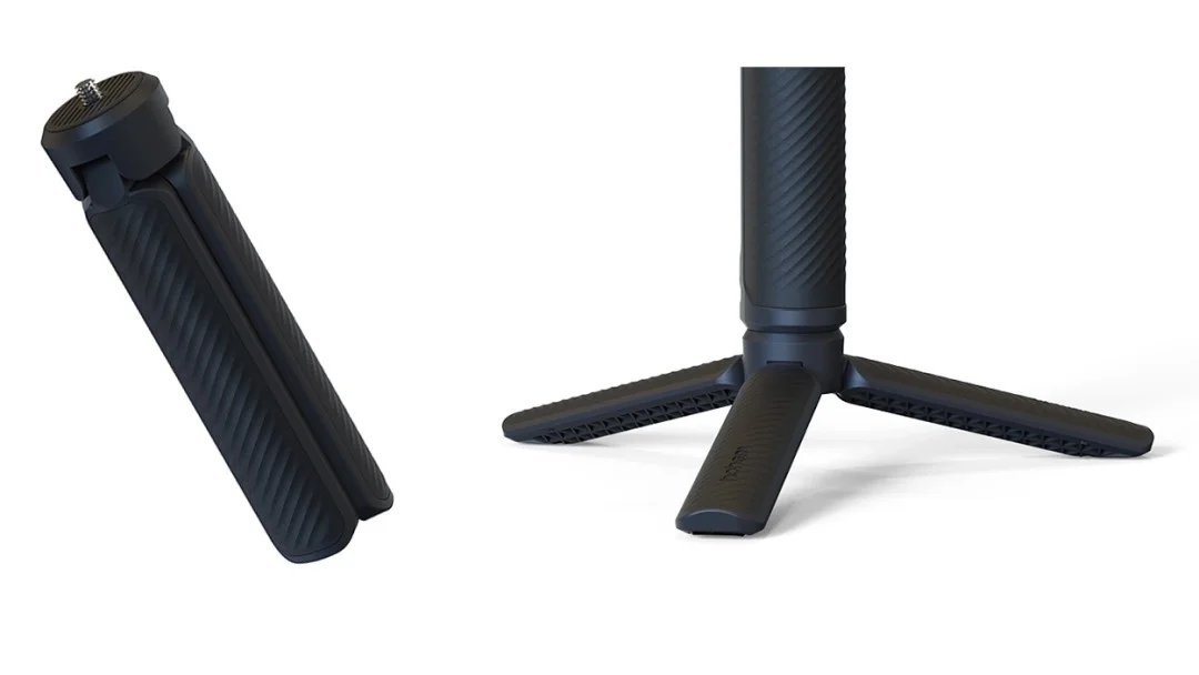 - DJI i Hohem – mini-trójnóg jest odczepiany, co może być zaletą (jeśli chcesz użyć innego statywu lub monopodu), ale łatwiej go też przypadkowo zostawić w domu.
