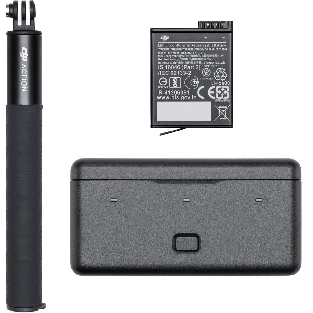 - ✔️ Zestaw Adventure Combo: W skład zestawu wchodzi wiele dodatkowych akcesoriów, takich jak trzy akumulatory, wielofunkcyjne etui, wysięgnik teleskopowy i inne.