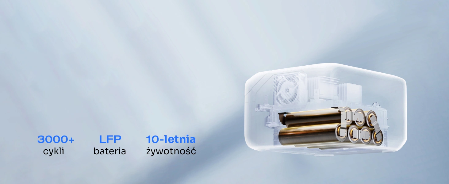 Ponad 3000 cykli ładowania dla 10 lat niezawodności. Dzięki ulepszonej baterii LFP, możesz być pewien długotrwałego zasilania.