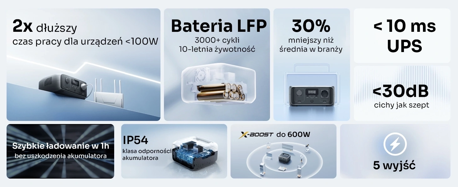 Ponad 3000 cykli ładowania dla 10 lat niezawodności. Dzięki ulepszonej baterii LFP, możesz być pewien długotrwałego zasilania.