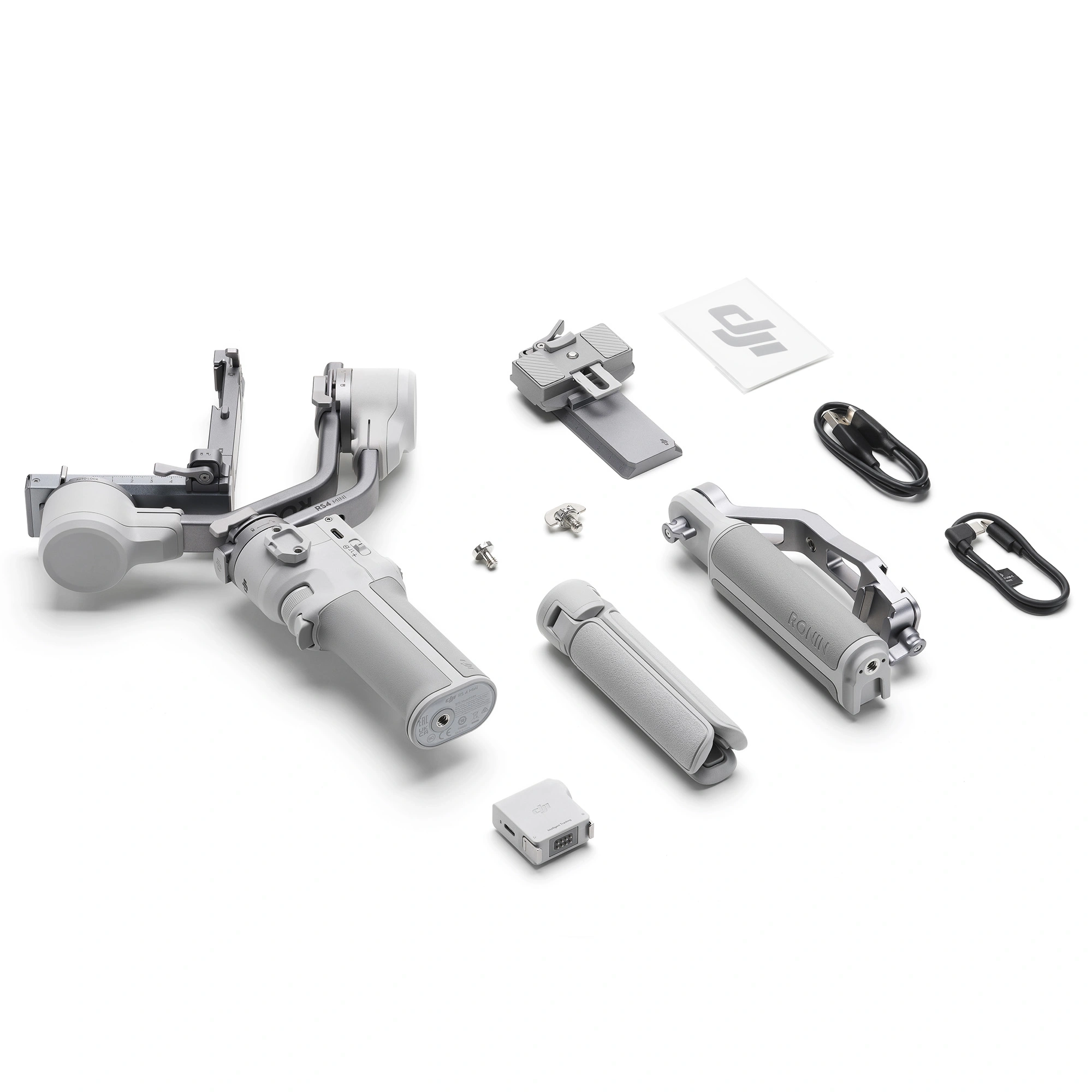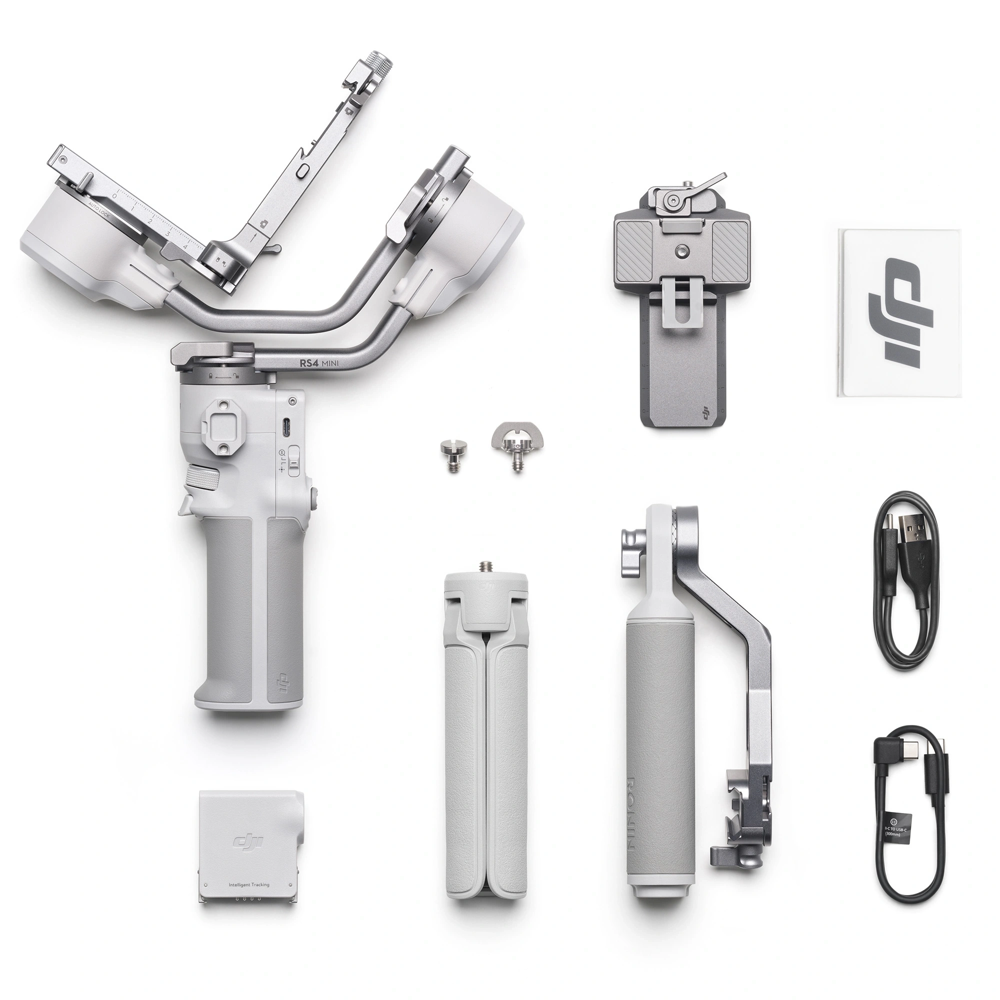 | Akcesoria w zestawie | Moduł inteligentnego śledzenia RS, Uchwyt RS 4 Mini Briefcase Handle, Płytka szybkiego montażu, Statyw RS 4 Mini, Kabel MCC w kształcie litery L (USB-C, 30 cm), Kabel do ładowania USB-C (40 cm), Zestaw śrub, Naklejka DJI |
