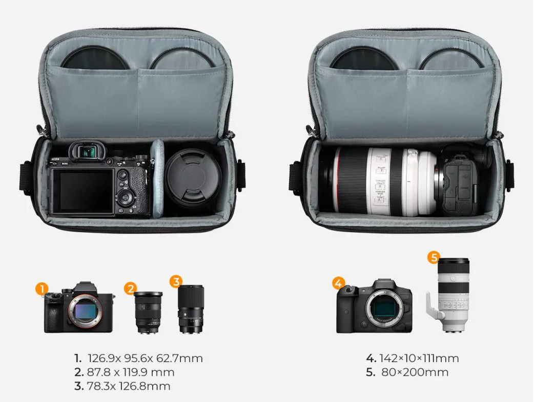 Model został wyposażony w duże górne otwarcie oraz dwustronne metalowe zamki YKK, które ułatwiają szybkie otwieranie torby. Dzięki temu aparat można wyjąć sprawnie i wygodnie, bez tracenia czasu. To szczególnie ważne podczas fotografowania w ruchu, kiedy liczy się szybka reakcja i łatwy dostęp do sprzętu.