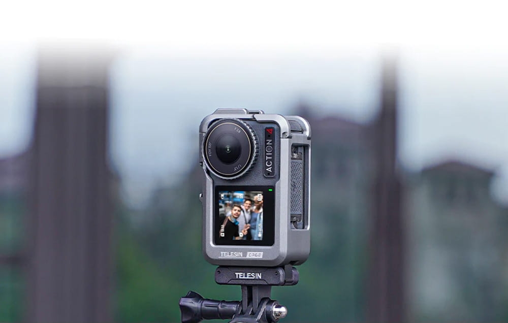 Uchwyt Telesin jest w pełni kompatybilny z kamerami DJI Action 3 / 4 / 5 Pro, co sprawia, że jest wygodnym rozwiązaniem dla użytkowników tego modelu. Dzięki podwójnej zimnej stopce można łatwo przymocować kamerę do selfie sticka, statywu, ramy rowerowej lub mocowania na szyi, umożliwiając nagrywanie w różnych scenariuszach - od sportów ekstremalnych po codzienne ujęcia.