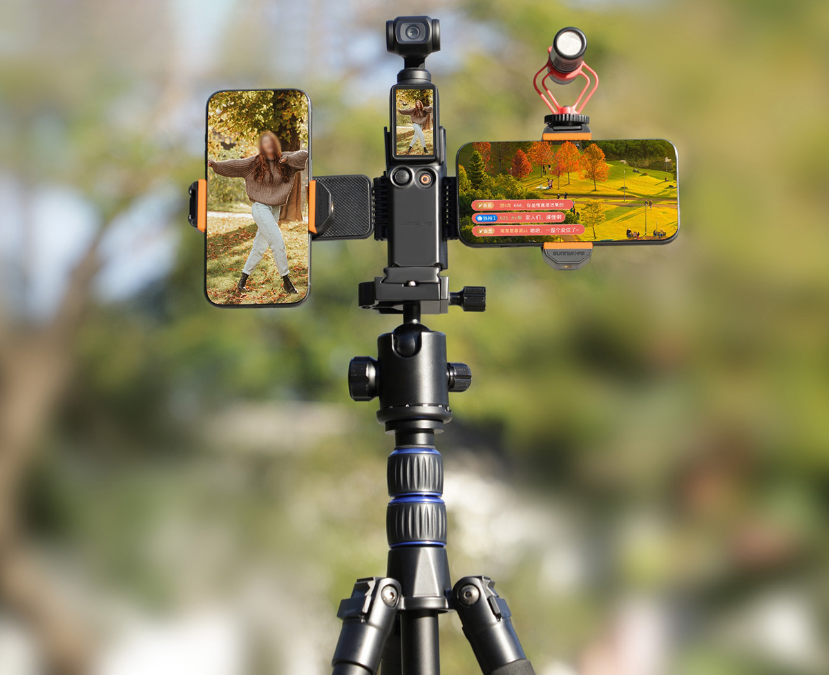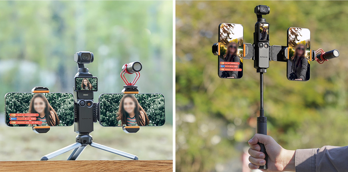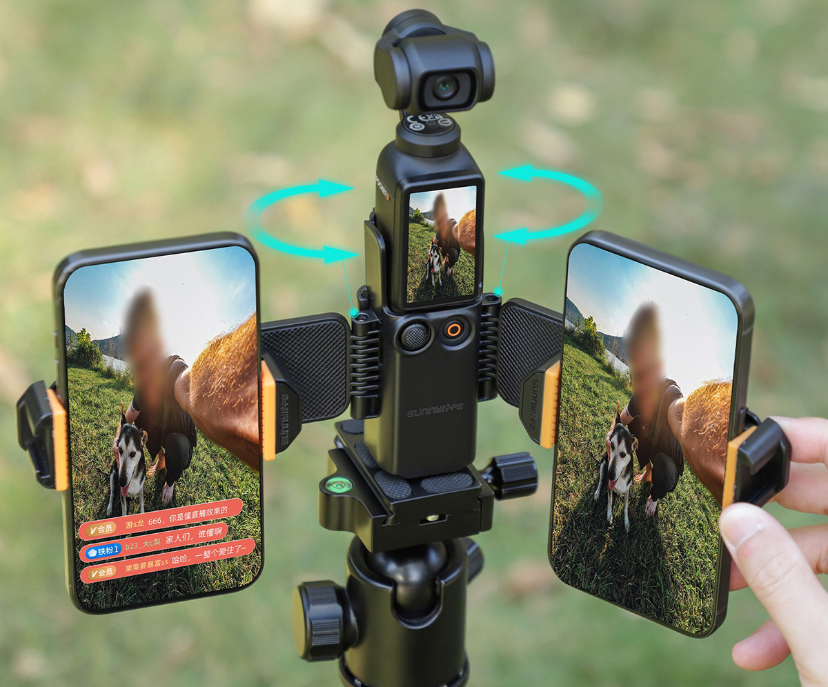 Sunnylife prezentuje innowacyjne rozwiązanie dla użytkowników kamery DJI Osmo Pocket 3: uchwyt na dwa telefony OP3-ZJ756. Jest to urządzenie, które poszerza możliwości rejestracji i transmisji, pozwalając na jednoczesne wykorzystanie dwóch smartfonów.