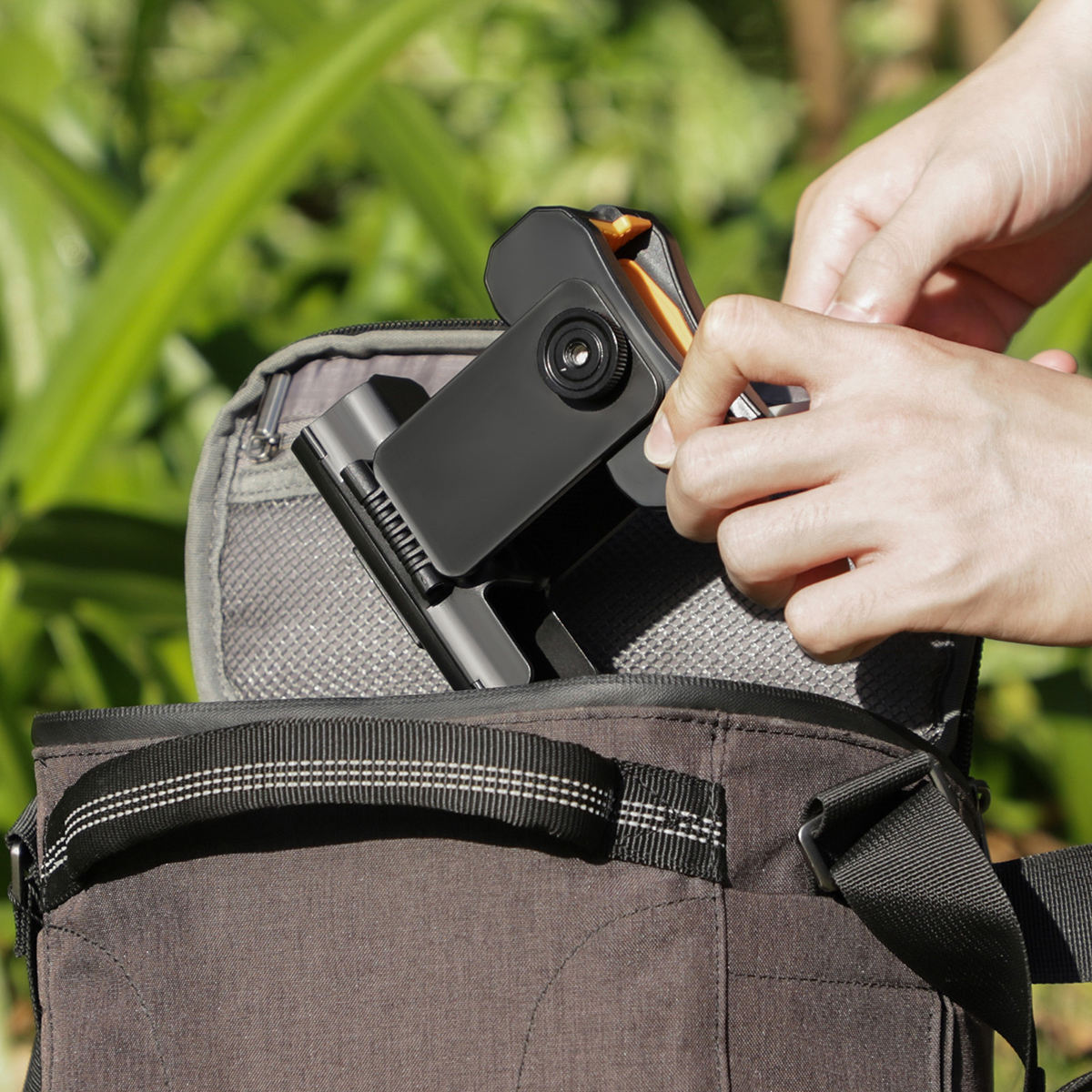 Zaprojektowany z myślą o bezpieczeństwie, uchwyt posiada elegancką blokadę szybkiego zwalniania. Antypoślizgowe podkładki silikonowe zapewniają stabilność urządzenia i ochronę przed zarysowaniami, podczas gdy wbudowane miękkie podkładki dodatkowo zabezpieczają kamerę DJI Osmo Pocket 3 przed uszkodzeniami.