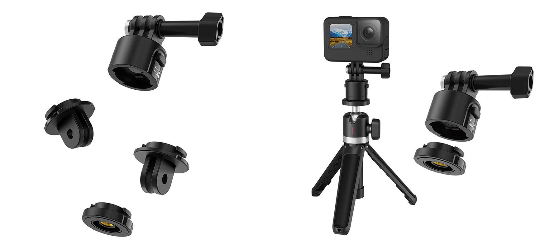 Teraz możesz jeszcze wygodniej montować różne akcesoria na swojej kamerze sportowej. Pozwoli Ci na to zestaw adapterów TELESIN! Znajdziesz w nim mocowanie z otworem 1/4 cala, dwa mocowania z dwoma bolcami, magnetyczny uchwyt umożliwiający ich szybki montaż oraz śrubę blokującą. Akcesoria są bardzo proste w instalacji i wyjątkowo kompaktowe – możesz mieć je zawsze pod ręką. Co więcej, dzięki przemyślanej konstrukcji zapewnią Twojemu urządzeniu niezbędną stabilność i bezpieczeństwo. Za ich pomocą z łatwością przymocujesz kamerę na przykład do statywu lub uchwytu do plecaka!
