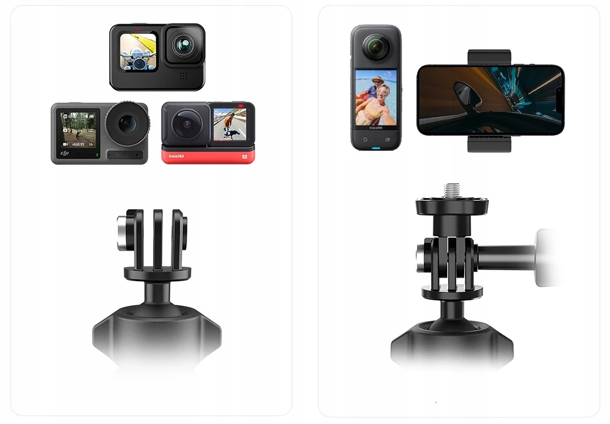 - ✔️ Uniwersalne mocowanie: Dwa adaptery do kamer sportowych i smartfonów