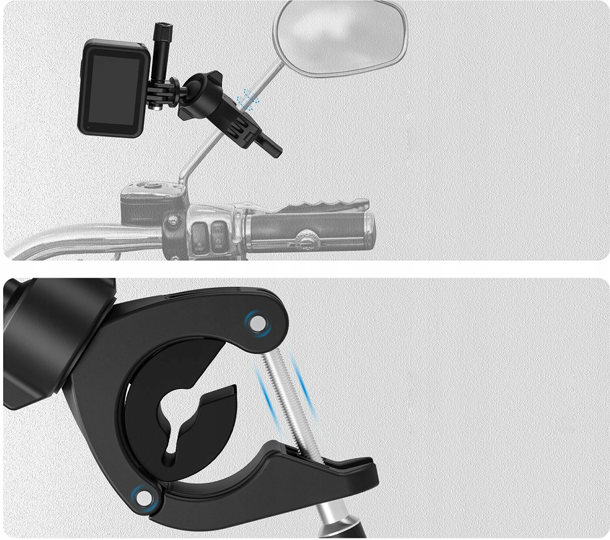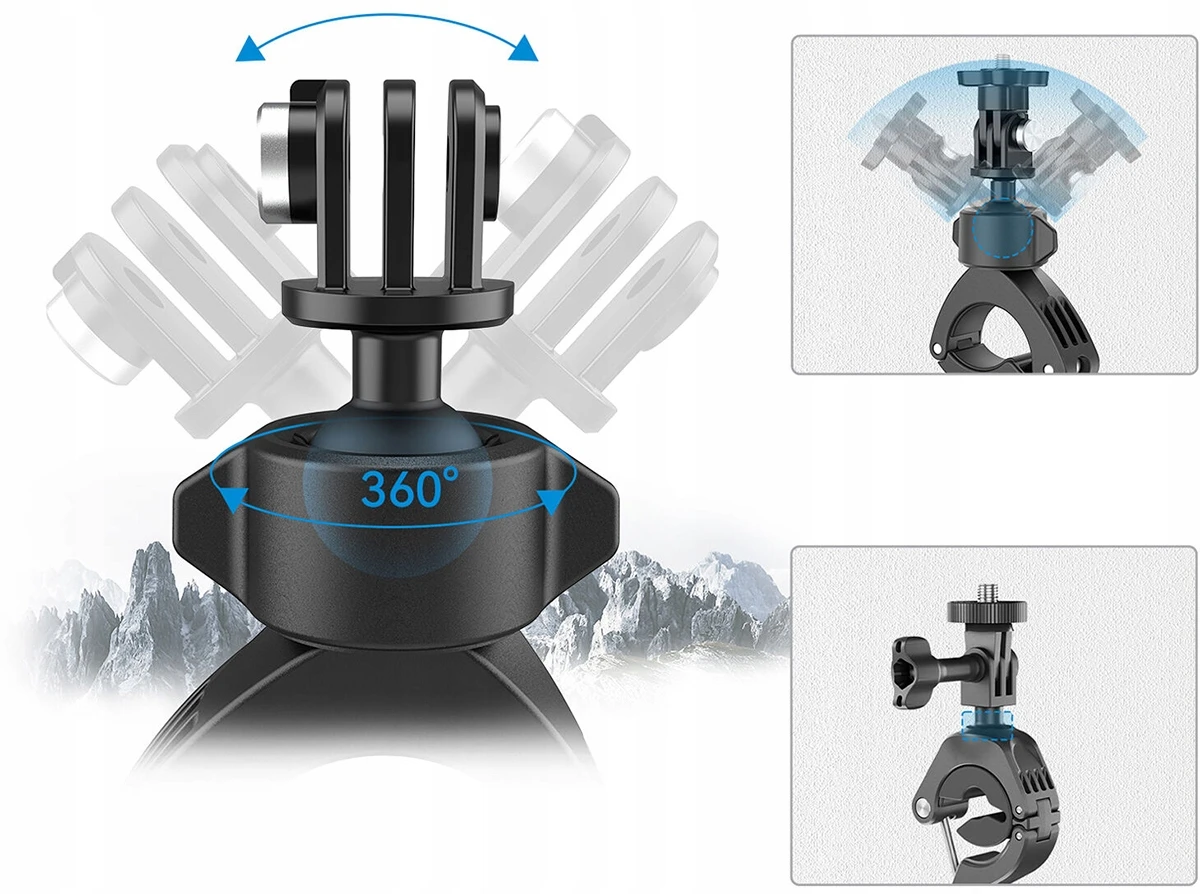 Uchwyt posiada przegub kulowy z możliwością regulacji w zakresie 360°, co pozwala na precyzyjne ustawienie kąta nagrywania. To idealne rozwiązanie dla każdego, kto chce uchwycić każdy szczegół swojej trasy.