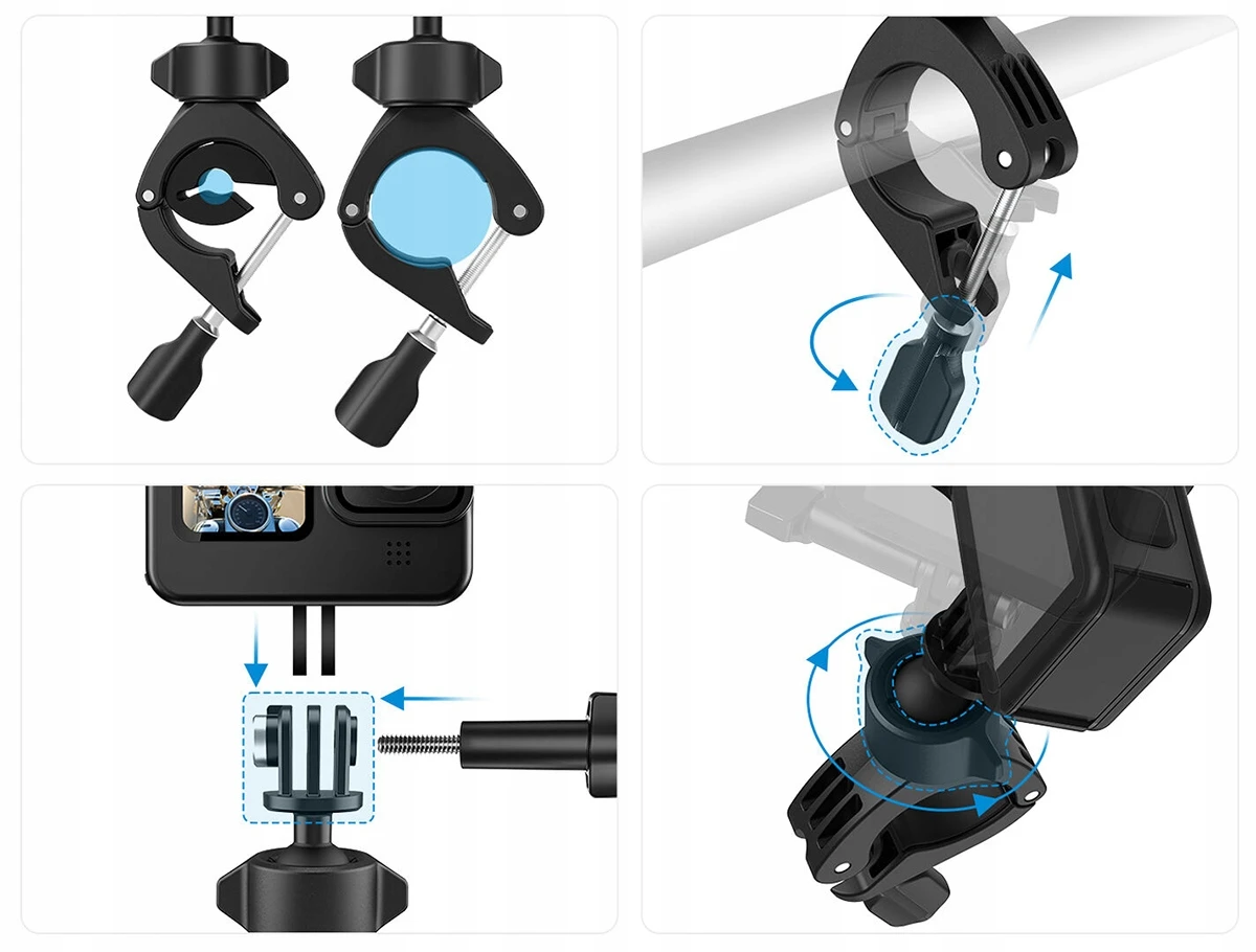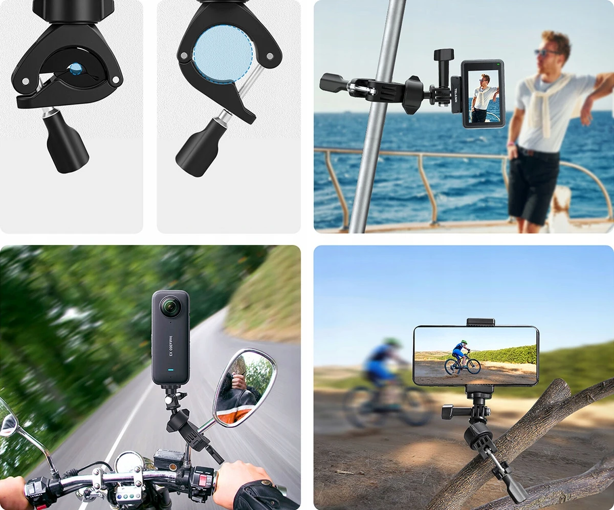 ⭐ Uniwersalne mocowanie, uchwyt zaciskowy na kierownice Telesin