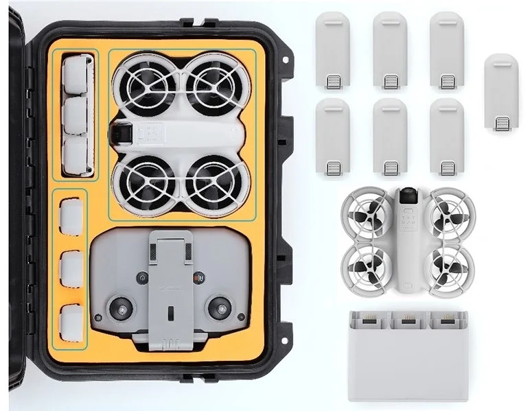 ➡️ Walizka pomieści łącznie 7 akumulatorów do DJI Neo (w tym jedną w dronie i 3 w hubie)