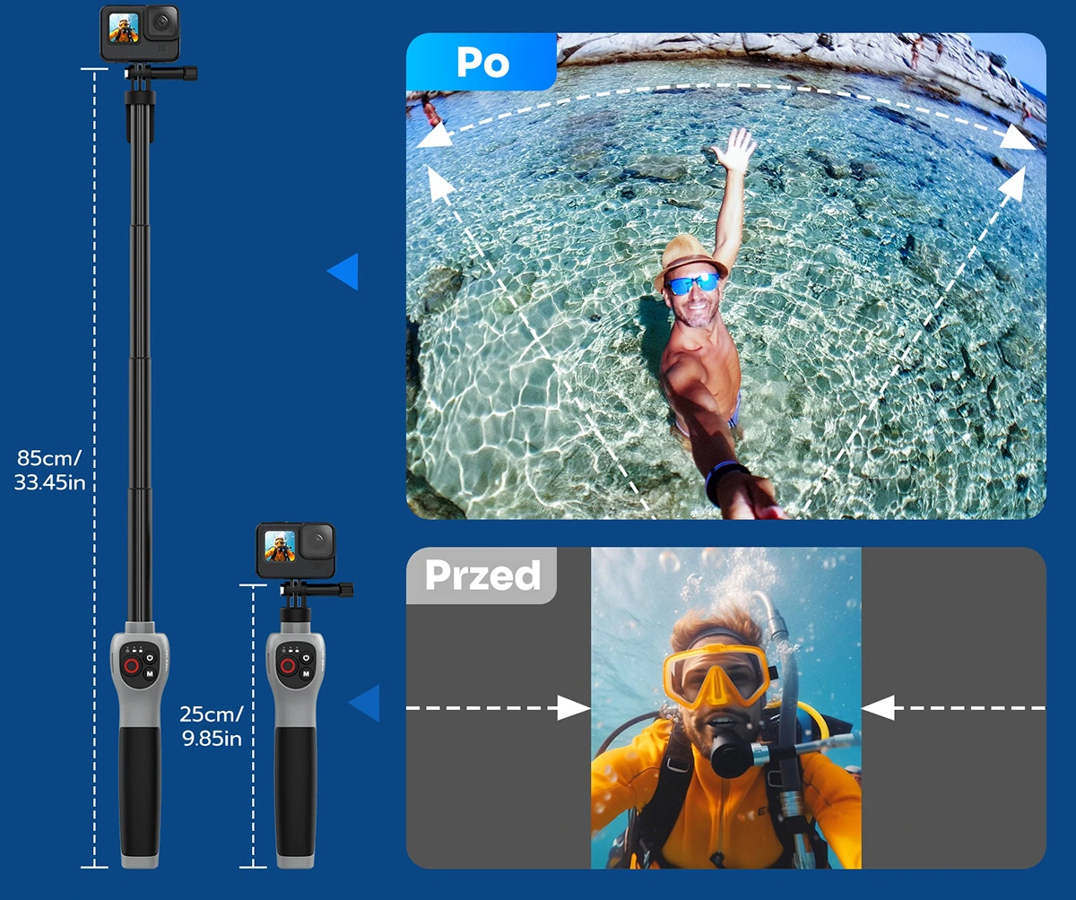 - ⭐️ Długość 85 cm - Szerokie ujęcia dzięki długości 85 cm. Idealny do panoramicznych zdjęć pod wodą.