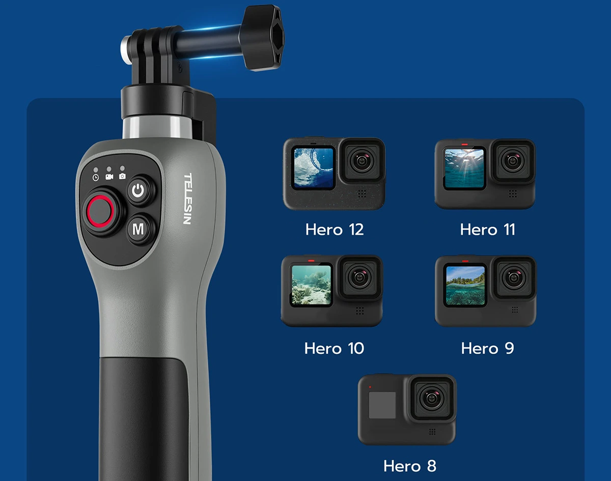 ✴️ Wodoodporny, zdalnie sterowany Selfie-stick Telesin do kamer sportowych