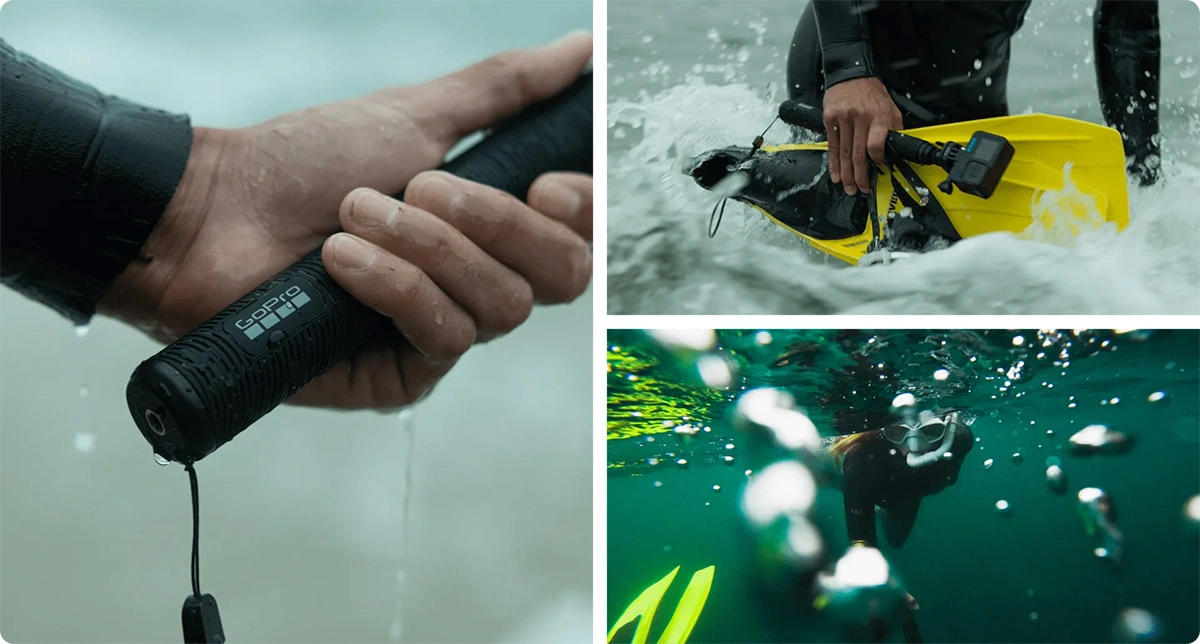 Możesz zrobić więcej niż tylko przedłużyć - adapter przegubu kulowego pozwala obracać i pochylać kamerę, zapewniając jeszcze większą elastyczność. A wodoodporna konstrukcja pozwala nagrywać ulubione aktywności w wodzie i wokół niej.