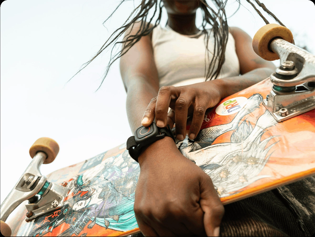 Użyj dołączonego przedłużenia paska na nadgarstek, aby bezpiecznie zamontować pilota Shutter Remote na nadgarstku i nagrywać, gdy nie trzymasz drążka. Pilot jest wodoodporny do głębokości 16 stóp (5 m).