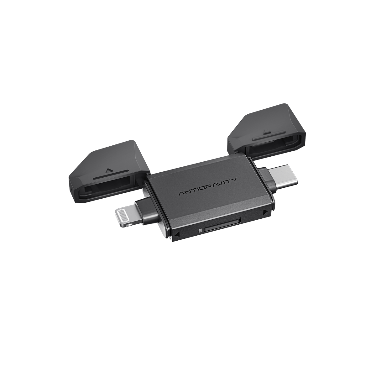 Antigravity Quick Reader to klucz do efektywnej pracy w terenie. Zapomnij o powolnym przesyłaniu plików przez Wi-Fi i marnowaniu cennej baterii drona. Po prostu wyjmij kartę pamięci, włóż ją do czytnika i podłącz bezpośrednio do swojego smartfona lub tabletu. Dzięki temu zyskujesz natychmiastowy dostęp do nagrań, możesz je szybko przejrzeć, edytować i udostępnić w mediach społecznościowych, będąc jeszcze na miejscu akcji.