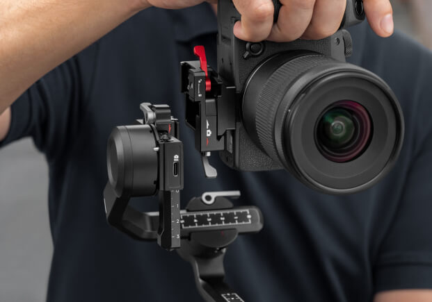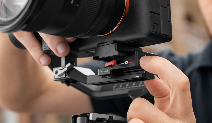 Ulepszona dwuwarstwowa płytka szybkiego montażu została wyposażona w górną płytę z zakrzywioną prowadnicą, która zapobiega obracaniu się i luzowaniu kamery. Co więcej, dzięki wyraźnym znacznikom mocowania i blokowania ułatwiono uruchamianie i przechowywanie urządzenia. Teraz wystarczy kilka chwil, aby przygotować się do pracy! Płytka jest też zgodna ze standardem ARCA, co pozwala na wygodny montaż różnego rodzaju statywów.