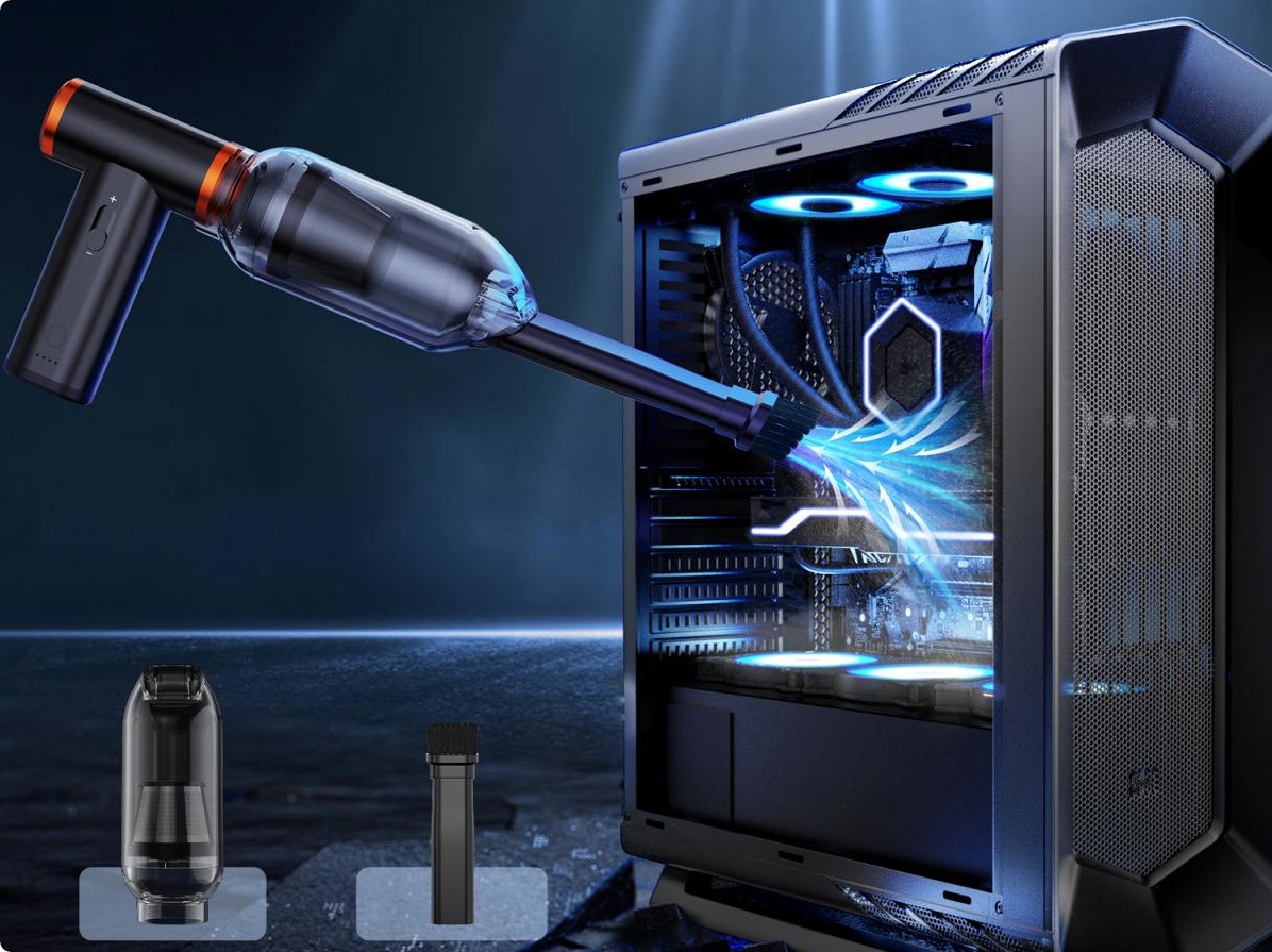 Dmuchawa i odkurzacz elektryczny 2w1 K&F Concept to praktyczne narzędzie do czyszczenia elektroniki, sprzętu biurowego, wnętrza samochodu i wielu innych powierzchni, na których gromadzi się kurz, pył oraz drobne zabrudzenia. Urządzenie łączy w sobie funkcję mocnej dmuchawy i kompaktowego odkurzacza, dzięki czemu pozwala nie tylko wydmuchać zanieczyszczenia, ale również je zebrać.