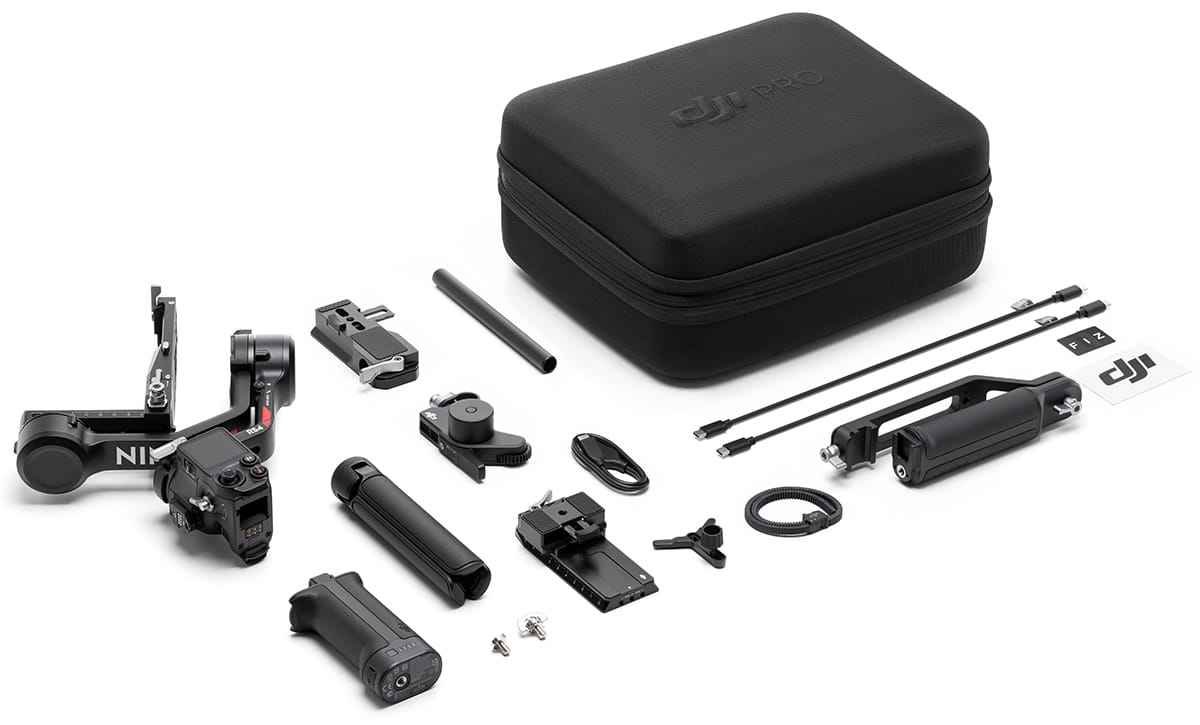 Samodzielna wersja DJI RS 4 zawiera uchwyt akumulatorowy BG21, płytkę szybkozłącza (Arca-Swiss/Manfrotto) i inne praktyczne akcesoria. DJI RS 4 Combo zawiera dodatkowe akcesoria, takie jak silnik Focus Pro, uchwyt do teczki i futerał do przenoszenia. Po zainstalowaniu silnika Focus Pro operatorzy mogą sterować ostrością za pomocą pokrętła lub regulować zoom obiektywu za pomocą joysticka. To płynne działanie umożliwia efektywną kontrolę obiektywu.