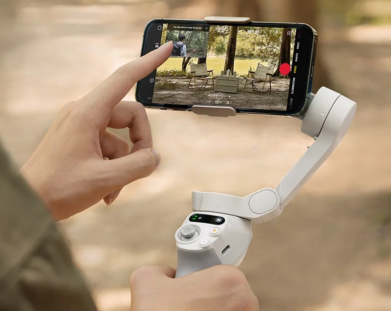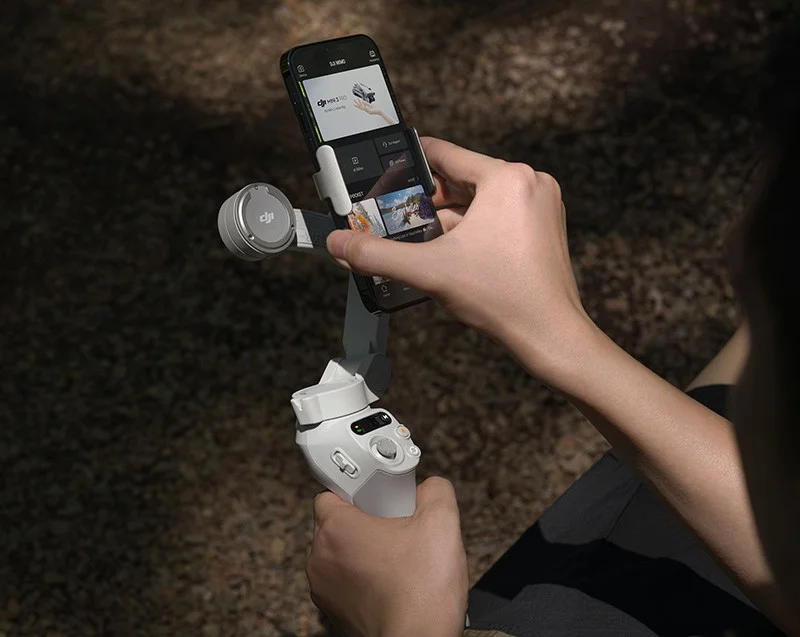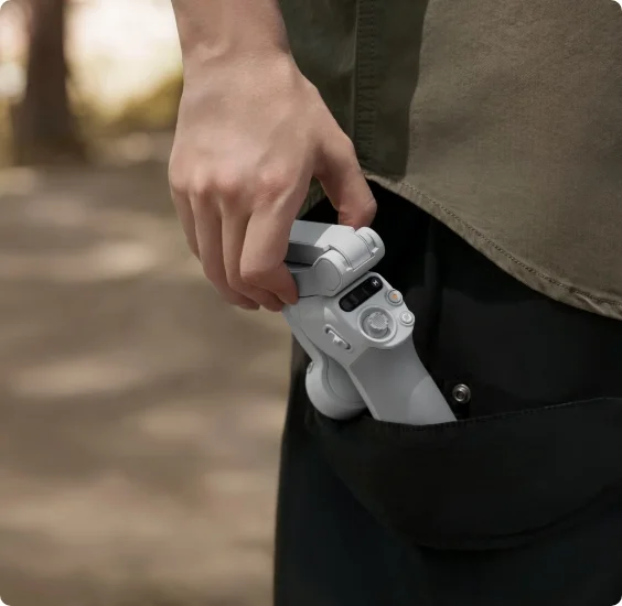 Osmo Mobile SE to lżejsza wersja Osmo Mobile 6, która mimo prostszej konstrukcji oferuje wszystkie kluczowe funkcje do tworzenia profesjonalnych filmów i zdjęć. Magnetyczny uchwyt umożliwia szybki montaż telefonu, a kompaktowa, składana forma pozwala na wygodne przenoszenie – nawet w kieszeni. Wbudowany panel stanu pozwala błyskawicznie zmieniać tryby jednym przyciskiem.