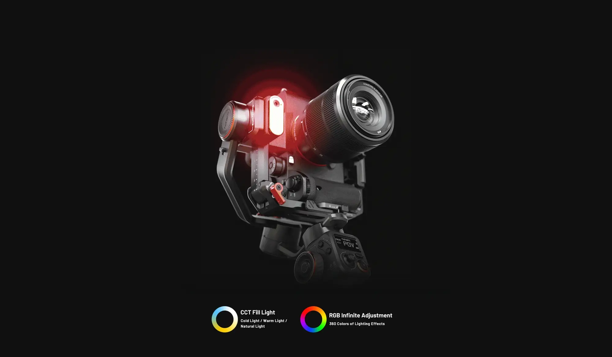 Zapewnia dodatkową funkcję światła wypełniającego z dwoma trybami: CCT (zimne i ciepłe światło) i światło otoczenia (RGB).