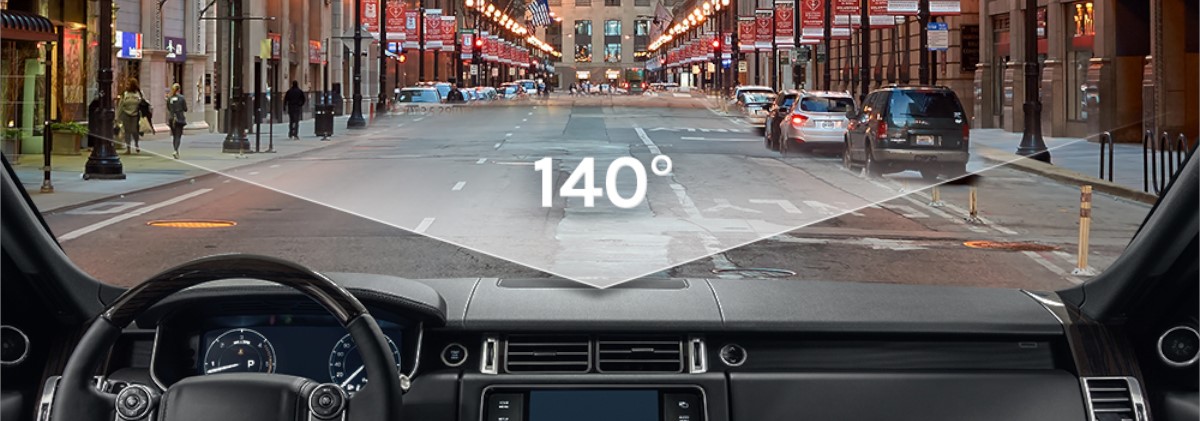 70mai M300 Dash Cam wyróżnia się szerokim polem widzenia 140°, aby zredukować martwe punkty i uzyskać pełniejsze pokrycie otoczenia.
