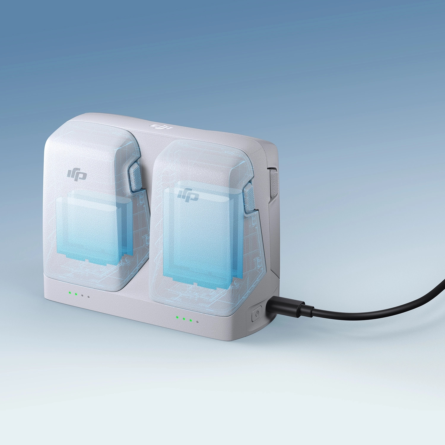 Przechowuj i ładuj: Hub umożliwia wygodne przechowywanie i jednoczesne ładowanie akumulatorów DJI Flip. W połączeniu z ładowarką DJI 65 W naładuje dwa akumulatory w około 70 minut.