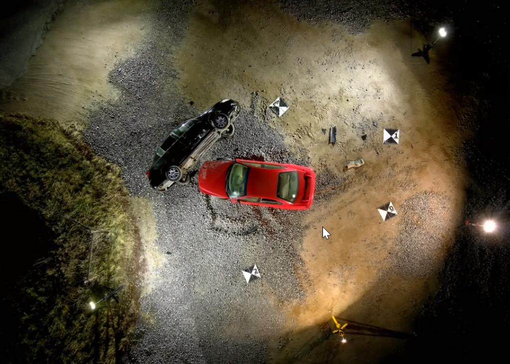 Dodatkowo, import danych do specjalistycznego oprogramowania pozwala na określenie trajektorii pocisku, zdefiniowanie linii wzroku lub wykonanie analizy zgniotu, pędu i innych rodzajów analiz kryminalistycznych. Chmura punktów może być nawet połączona z danymi ze skanera naziemnego przy użyciu darmowego oprogramowania, takiego jak CloudCompare. Poniższy obraz przedstawia przykład z danymi z drona i bez nich.