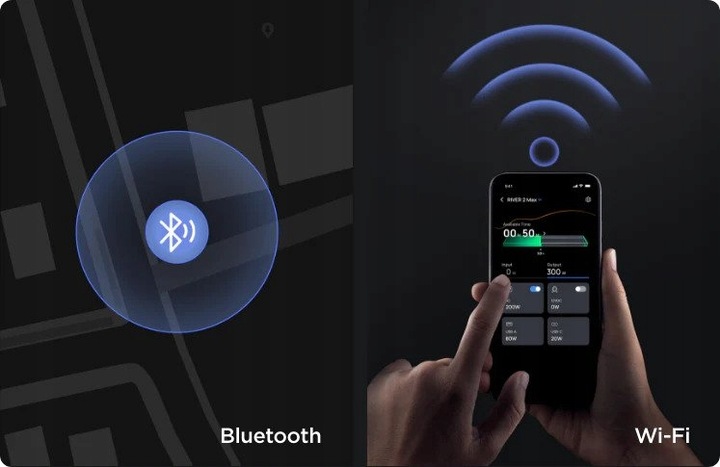 Teraz możesz wygodnie kontrolować swoją stację zasilania na odległość. Wystarczy skorzystać z aplikacji EcoFlow, którą znajdziesz na przykład w sklepie App Store lub Google Play. Za jej pomocą w prosty sposób sprawdzisz poziomy naładowania, dostosujesz ustawienia i zmienisz prędkości ładowania. RIVER 2 łączy się ze smartfonem przez Bluetooth lub Wi-Fi. Z EcoFlow wszystko, czego potrzebujesz, masz w zasięgu ręki!
