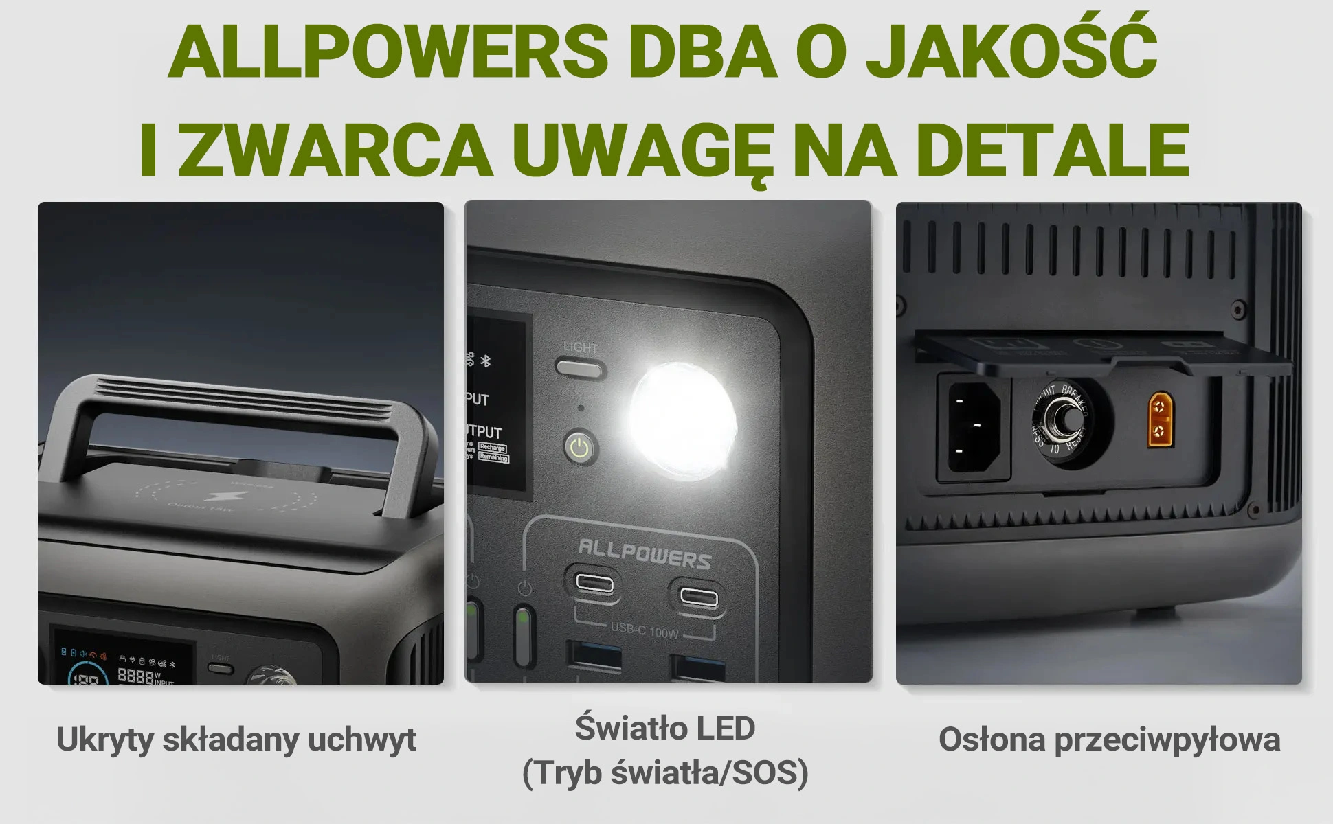 Przenośna stacja zasilania ALLPOWERS R600 wyróżnia się wysoką jakością wykonania i przemyślanym designem. Składany uchwyt ułatwia przenoszenie, światło LED z trybem SOS zapewnia funkcjonalność w każdych warunkach, a osłona przeciwprzepięciowa gwarantuje bezpieczeństwo użytkowania. ALLPOWERS stawia na jakość i każdy szczegół, aby spełnić oczekiwania najbardziej wymagających użytkowników.